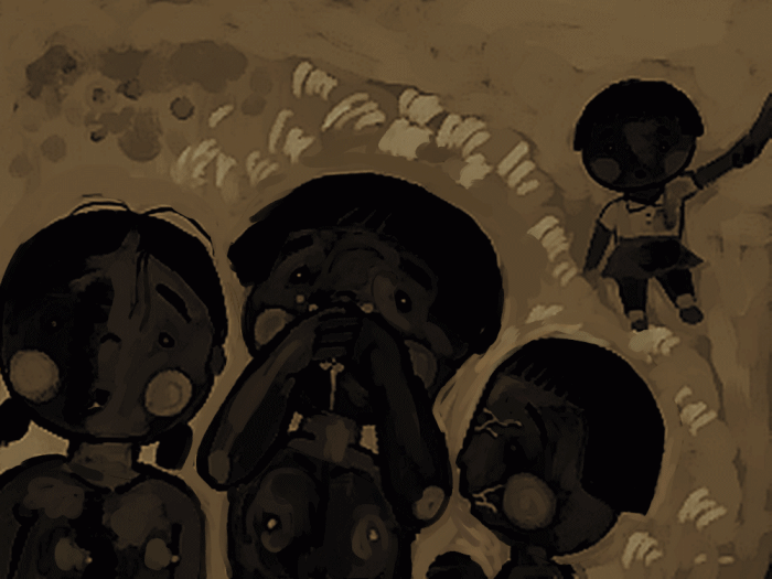 で潜り込んだりしている間に少しずつ暗示されていたように思います。気がついた頃には友達の顔はすっかり